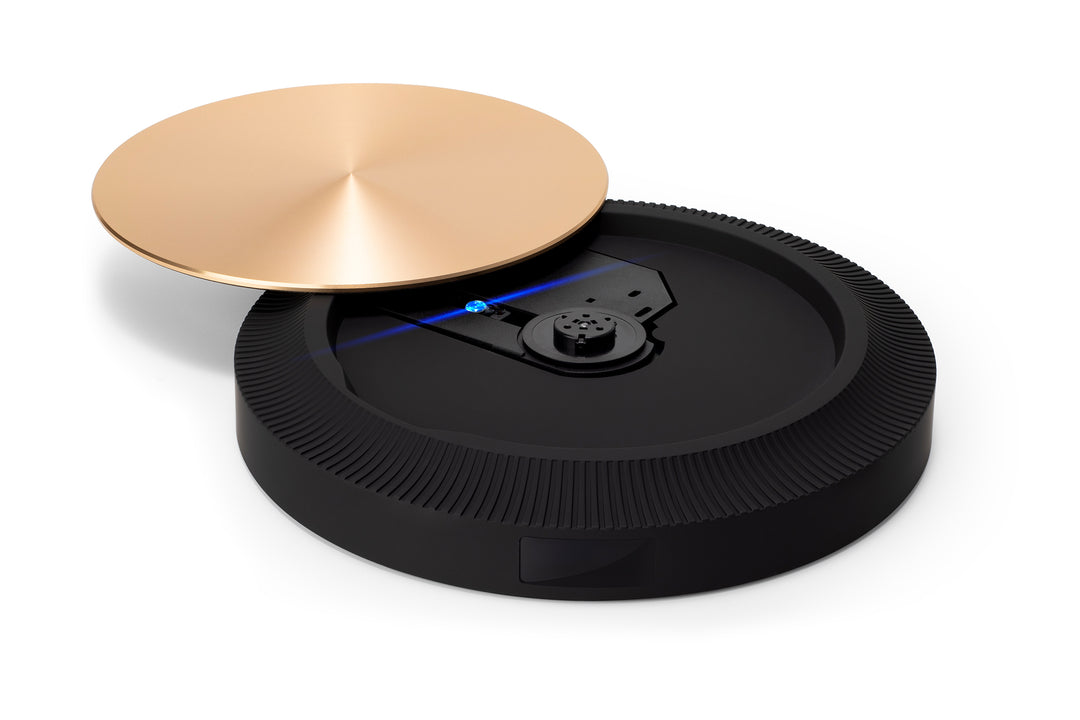 Flopping open and slapping closed was the standard operation of CD players and provided an opportunity for a sleeker cleanerdesign. Therefore, the upper cover smoothly rotates to open and close, secured by a clean magnetic click. The upper cover openscompletely to provide full access. It is novel yet intuitive and natural.