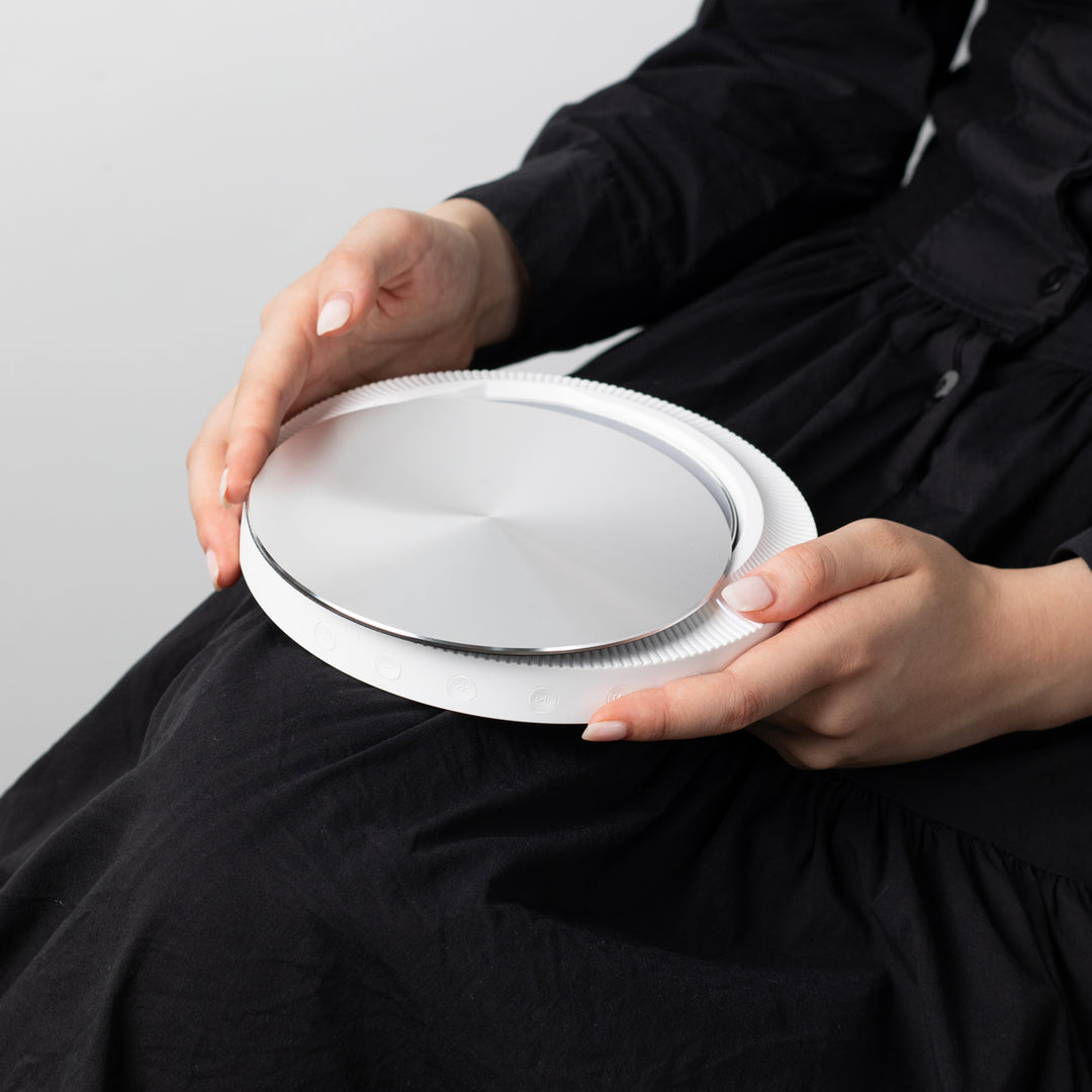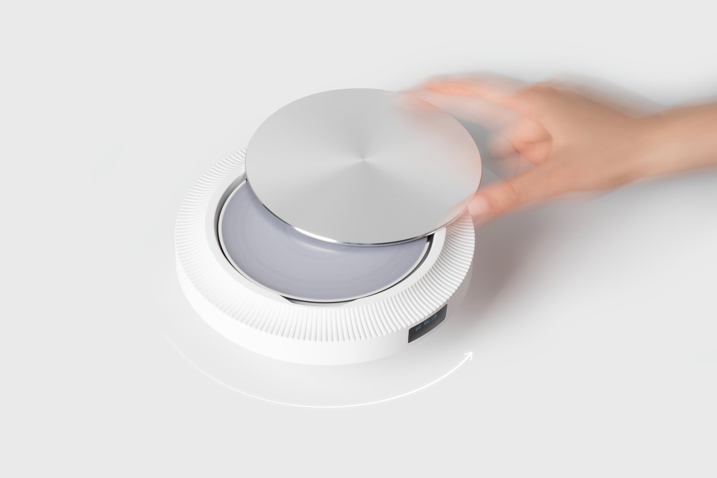 Inspired by the volume control knob and CD disc, the minimalistic volume scale is displayed on the surface of the CD player, pure simplicity.