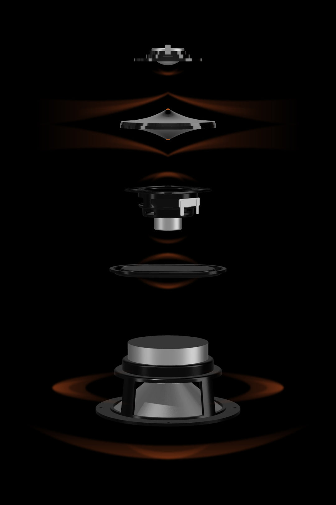 - 1.25" silk film tweeter x1 + 2.75" midrange speaker x1 + 5.25" subwoofer x1.