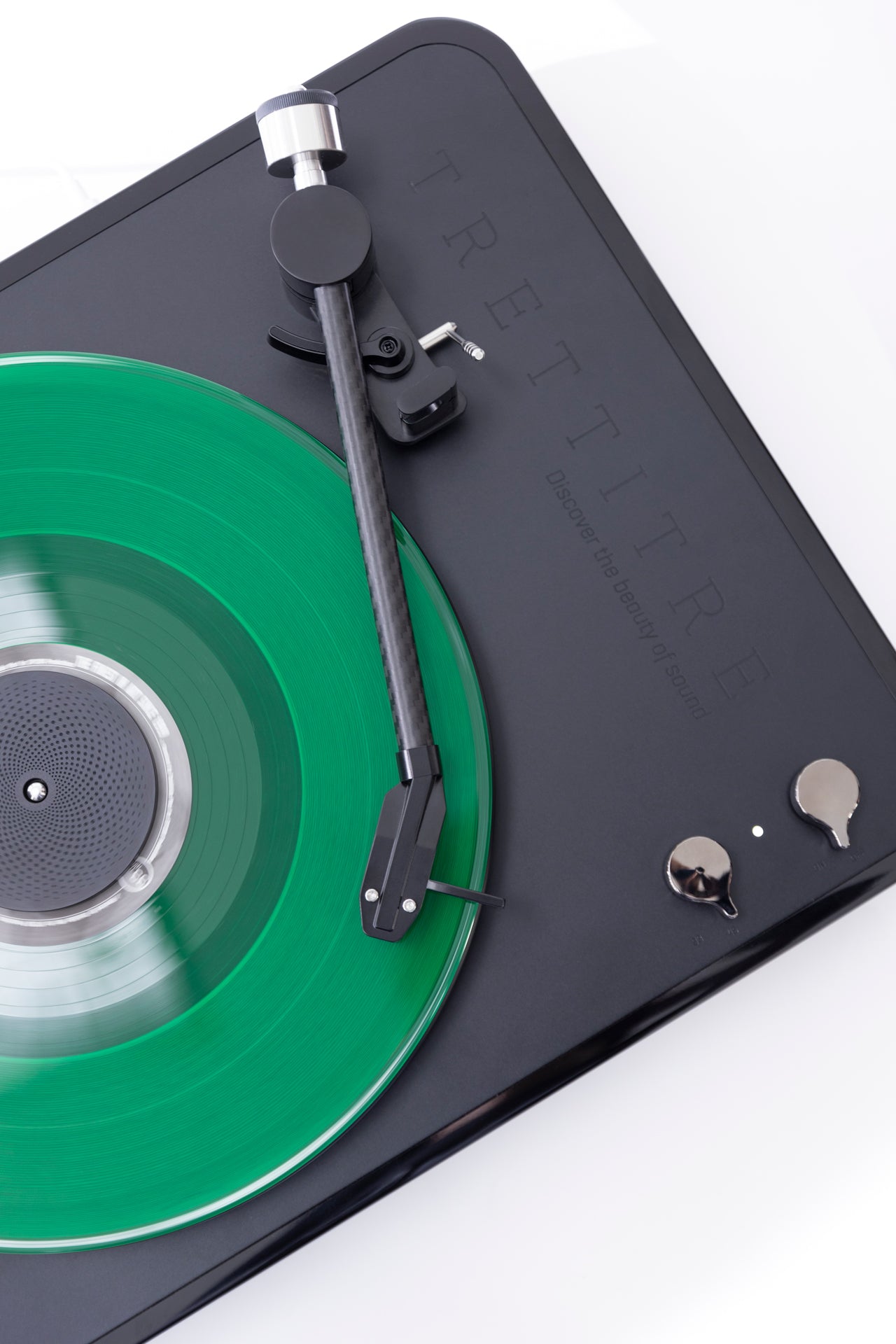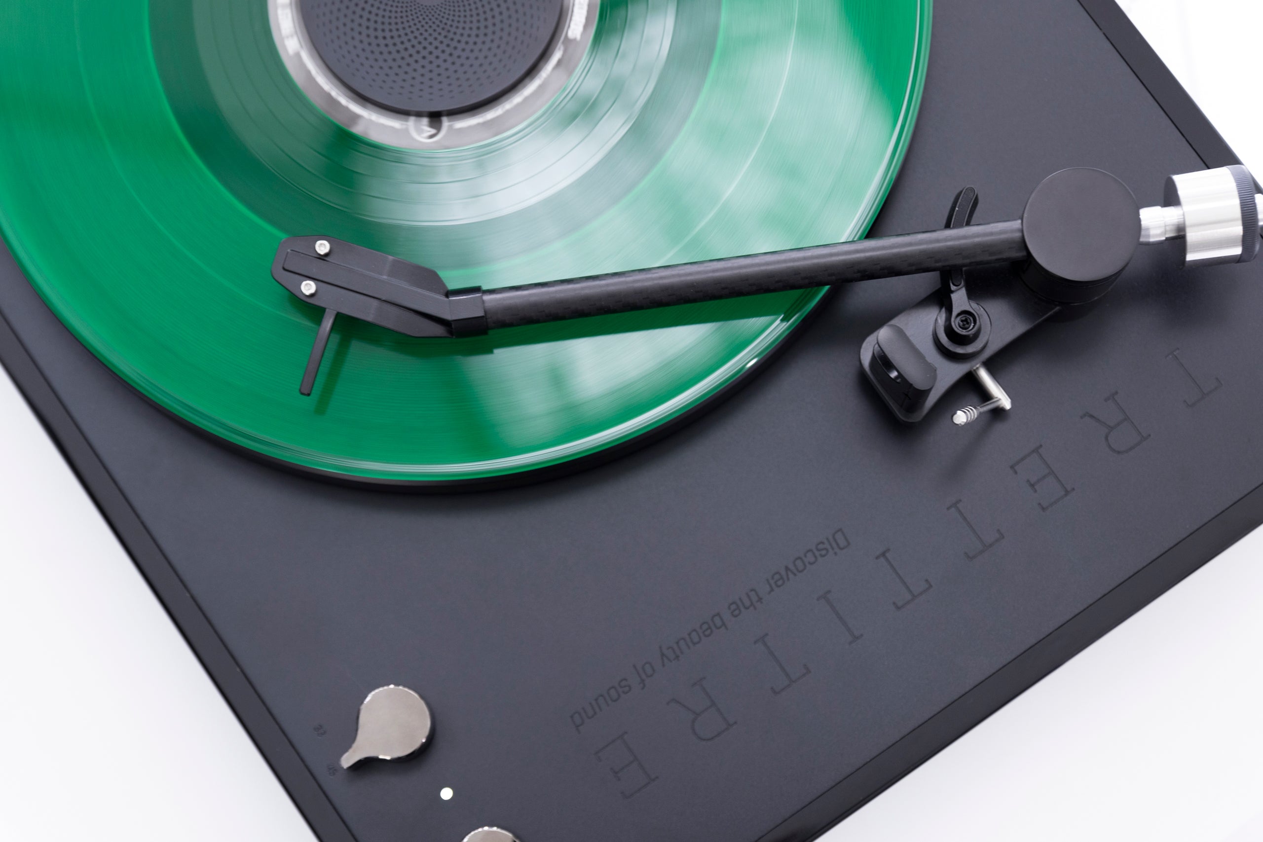 - The ultra-lightweight carbon fiber tonearm is rigid and sturdy while maintaining its light and slim character.