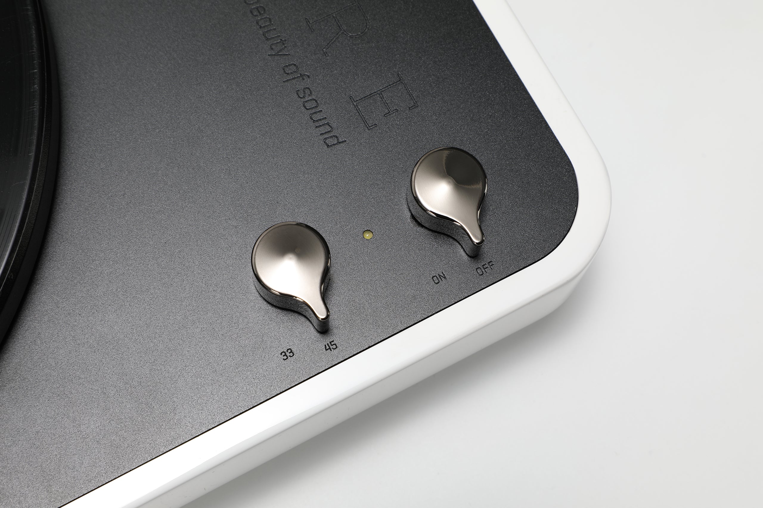 - The 1.7kg heavy-duty cast iron platter features a black paint finish and an excellent anti-resonance characteristic.